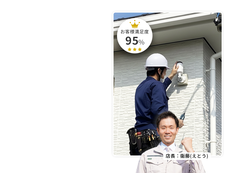 メッセージ:最近は防犯意識の高まりから、「自宅に防犯カメラを付けたい」というご相談が増えています。私たちは経験豊富な職人と連携し、死角や侵入経路を踏まえた“効く設置”をご提案。配線はできるだけスッキリ見せ、屋外はしっかり固定・防水処理まで行い、設定や映像確認までまとめて対応します。