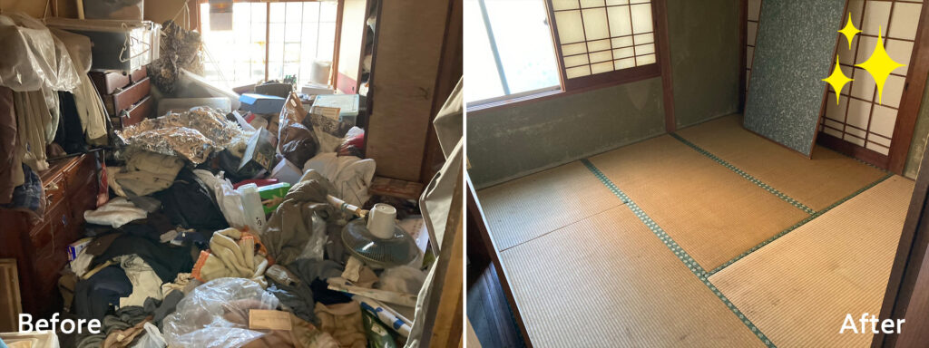 物が溢れかえっている状態から平均して1日以内で綺麗に片付け致します!(2日以上かかる場合は事前にお伝えします)